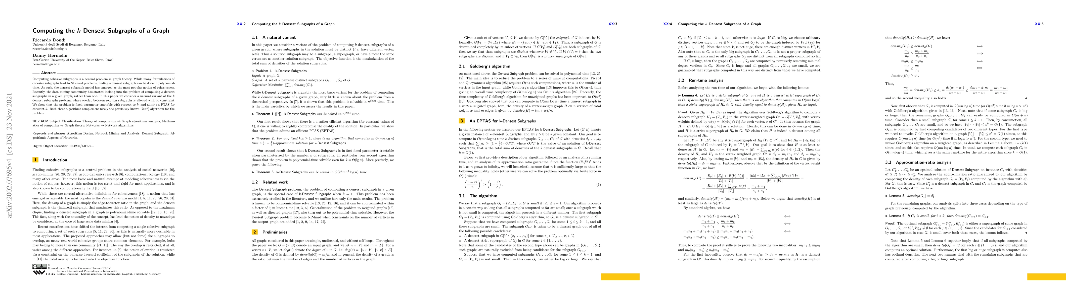 This paper explores the computational complexity of finding k densest subgraphs in a given graph, analyzing three variants based on the allowed overlap between subgraphs. It proves NP-hardness for no overlap (k >= 3) and fixed-parameter tractability with a PTAS for unrestricted overlap and distinct subgraphs.