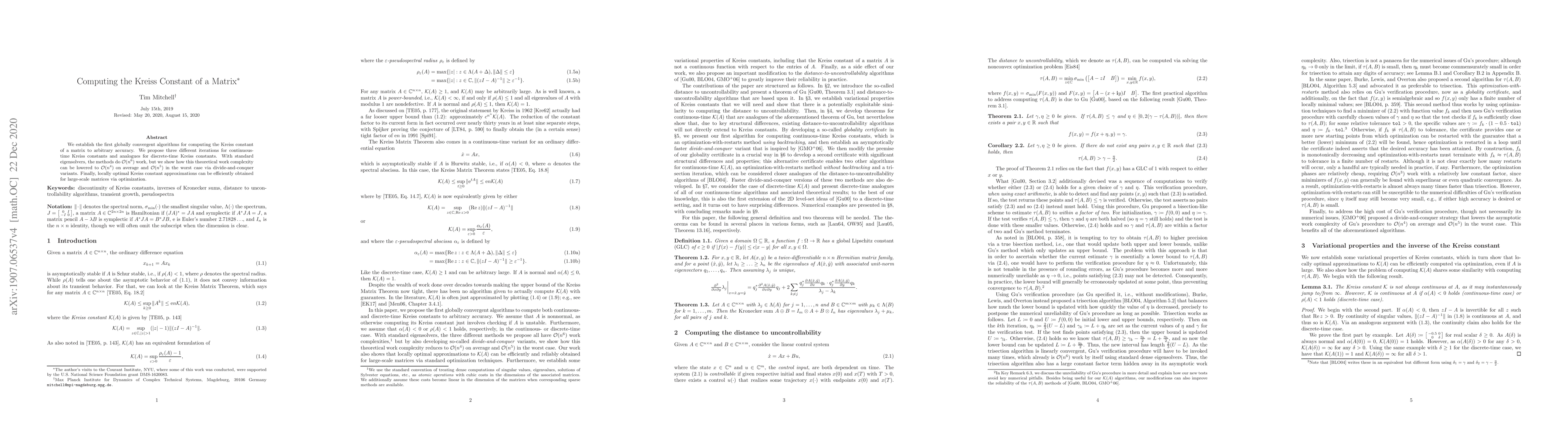 Researchers developed new algorithms to compute the Kreiss constant of a matrix with improved efficiency, reducing computational complexity from $O(n^6)$ to $O(n^4)$ on average and $O(n^5)$ in worst case.