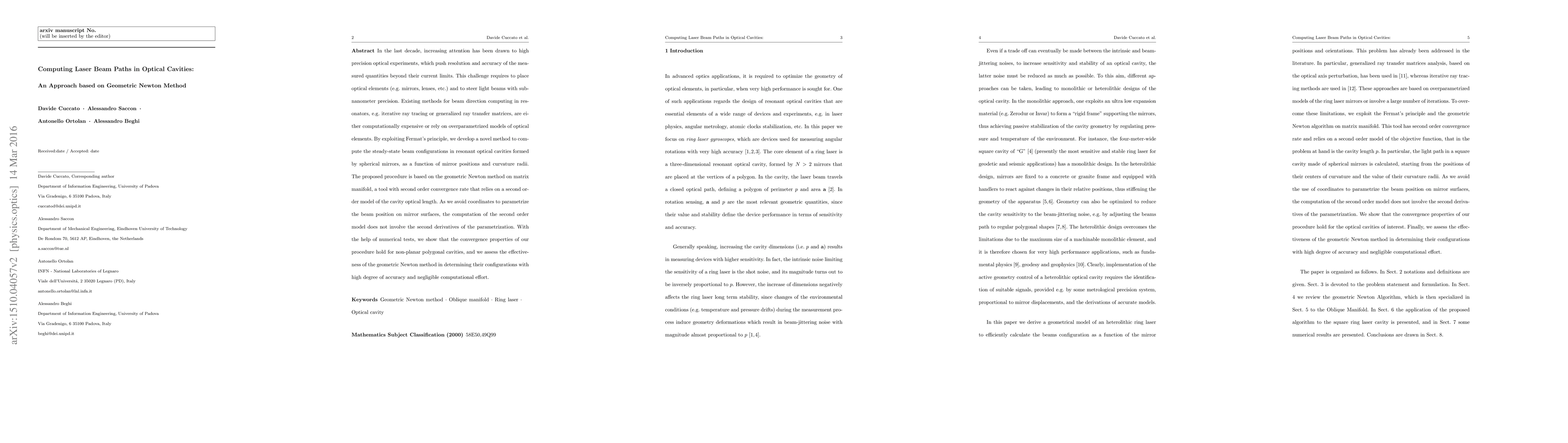 This paper introduces a novel geometric Newton's method for computing laser beam paths in optical cavities, leveraging Fermat's principle to achieve high precision and efficiency. The method demonstrates second-order convergence and high accuracy in determining beam configurations in both spherical and non-planar polygonal cavities.