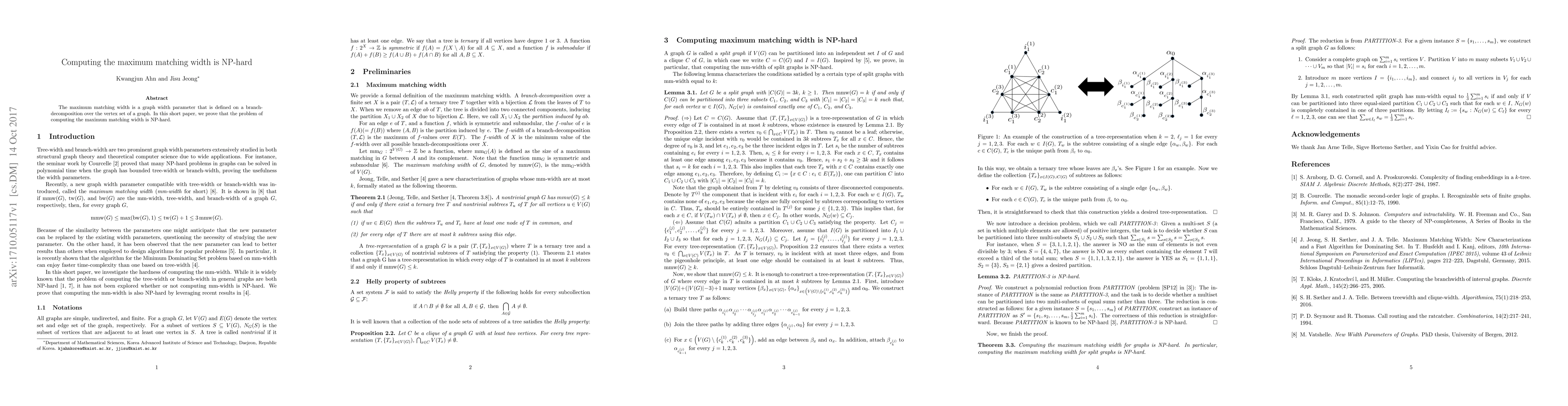 This paper proves that determining the maximum matching width, a graph width parameter defined on a branch-decomposition, is an NP-hard problem. This finding underscores the computational complexity involved in evaluating this graph parameter.