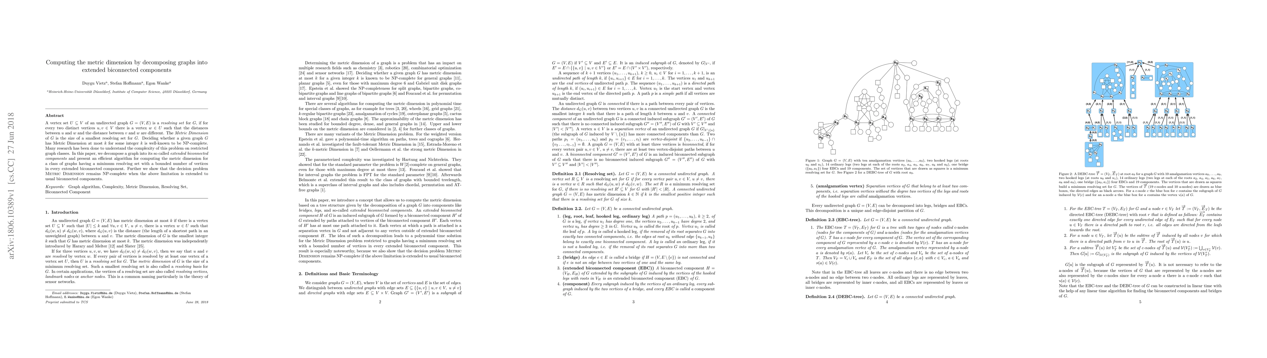 This paper presents an efficient algorithm for computing the metric dimension by decomposing graphs into extended biconnected components, focusing on graphs where each component has a bounded minimum resolving set. It also demonstrates that the METRIC DIMENSION problem remains NP-complete even when considering usual biconnected components.
