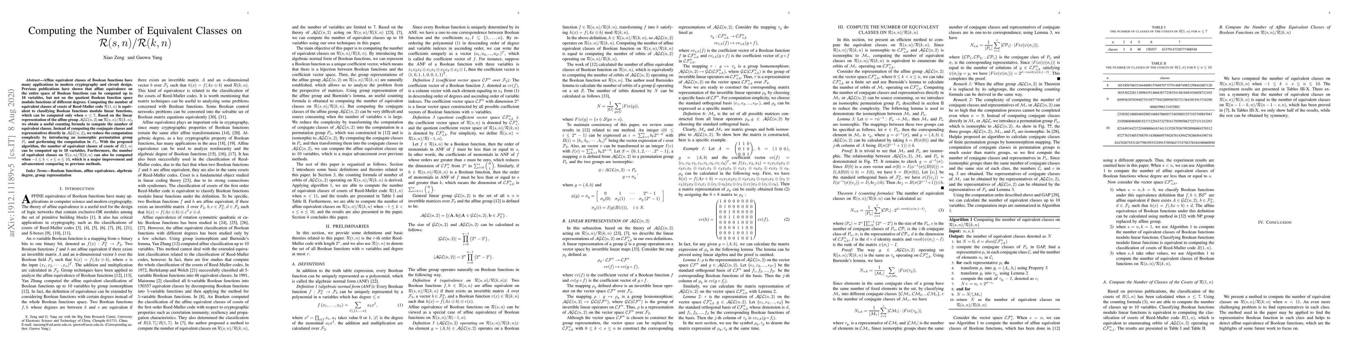 Affine equivalent classes of Boolean functions have many applications in modern cryptography and circuit design. Previous publications have shown that affine equivalence on the entire space of Boolean functions can be computed up to 10 variables, but not on the quotient Boolean function space modulo functions of different degrees. Computing the number of equivalent classes of cosets of Reed-Muller code $\mathcal{R}(1,n)$ is equivalent to classifying Boolean functions modulo linear functions, which can be computed only when $n\leq 7$. Based on the linear representation of the affine group $\mathcal{AGL}(n,2)$ on $\mathcal{R}(s,n)/\mathcal{R}(k,n)$, we obtain a useful counting formula to compute the number of equivalent classes. Instead of computing the conjugate classes and representatives directly in $\mathcal{AGL}(n,2)$, we reduce the computation complexity by introducing an isomorphic permutation group $P_n$ and performing the computation in $P_n$. With the proposed algorithm, the number of equivalent classes of cosets of $R(1,n)$ can be computed up to 10 variables. Furthermore, the number of equivalent classes on $\mathcal{R}(s,n)/\mathcal{R}(k,n)$ can also be computed when $-1\leq k< s\leq n\leq 10$, which is a major improvement and advancement comparing to previous methods.
