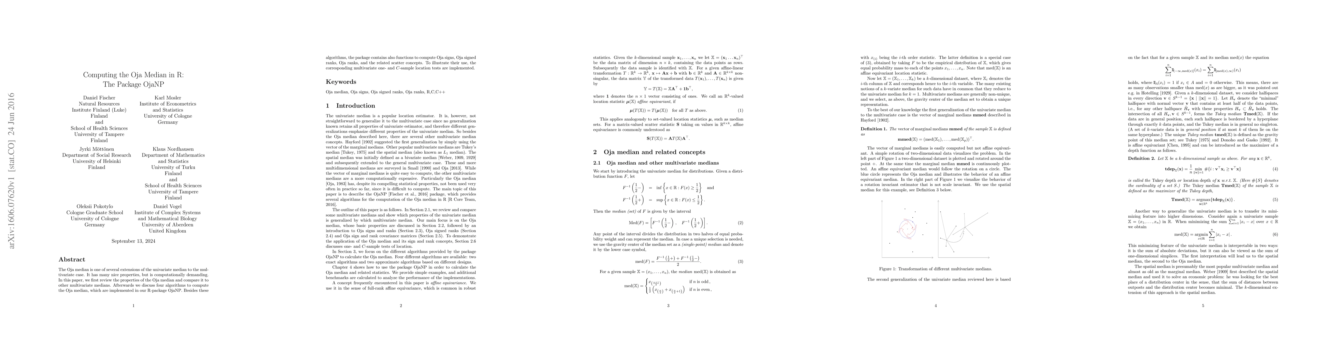 A new R package called OjaNP provides algorithms for computing the multivariate Oja median, a statistical concept with several useful properties.