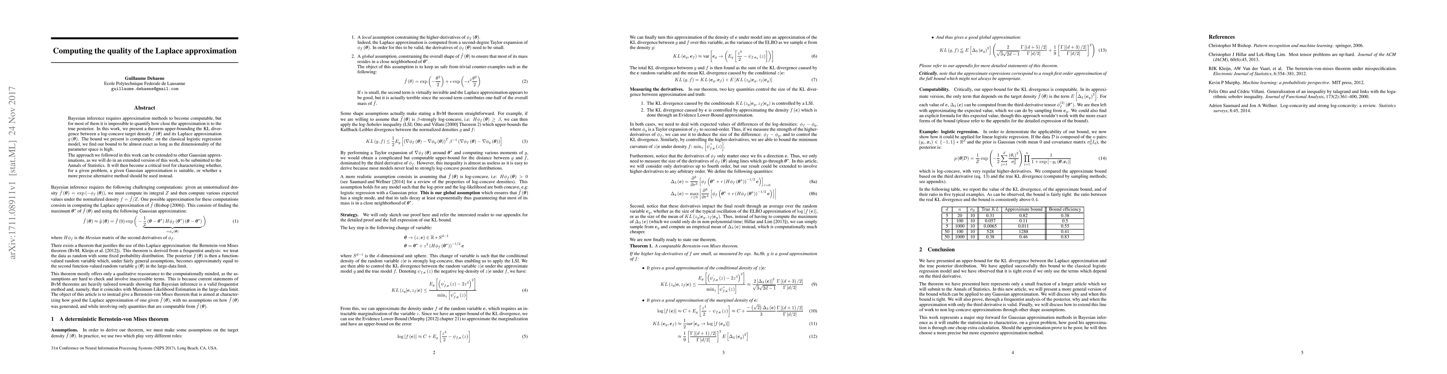 This paper introduces a computable upper-bound theorem for the KL divergence between a true log-concave posterior and its Laplace approximation, demonstrating its near-exactness in high-dimensional logistic regression models. The method can be extended to other Gaussian approximations, providing a tool for assessing the suitability of Gaussian approximations in Bayesian inference.
