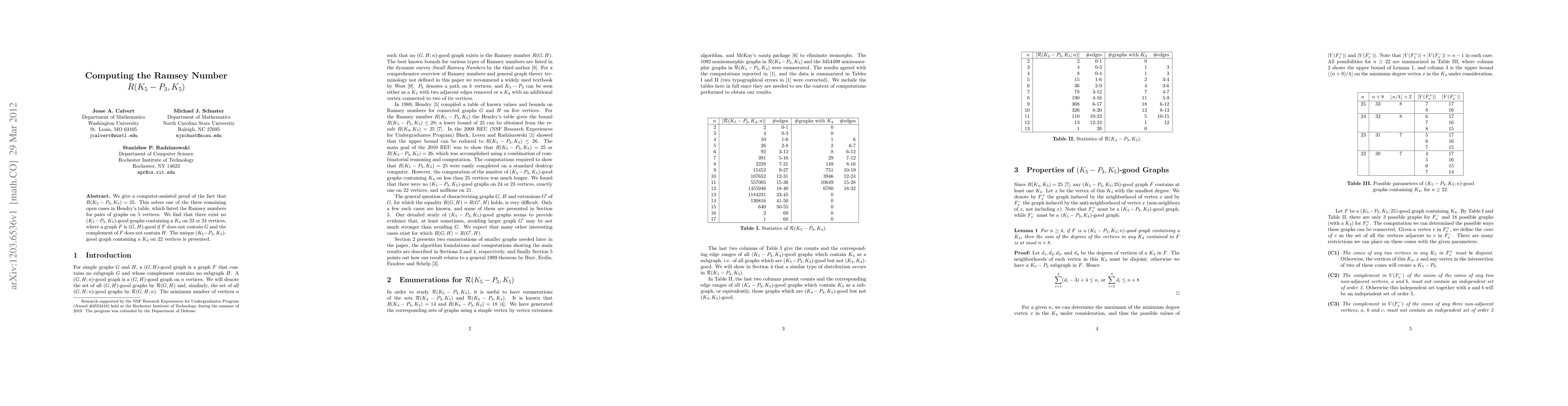 We give a computer-assisted proof of the fact that $R(K_5-P_3, K_5)=25$. This solves one of the three remaining open cases in Hendry's table, which listed the Ramsey numbers for pairs of graphs on 5 vertices. We find that there exist no $(K_5-P_3,K_5)$-good graphs containing a $K_4$ on 23 or 24 vertices, where a graph $F$ is $(G,H)$-good if $F$ does not contain $G$ and the complement of $F$ does not contain $H$. The unique $(K_5-P_3,K_5)$-good graph containing a $K_4$ on 22 vertices is presented.