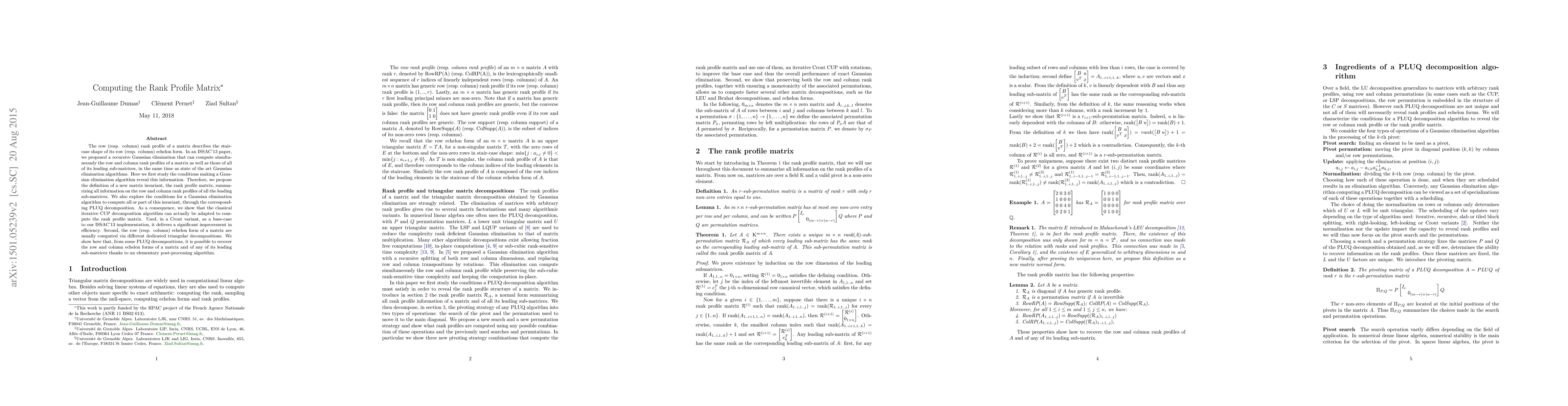 This paper proposes a recursive Gaussian elimination method to compute the rank profile matrix, which summarizes row and column rank profiles of a matrix and its leading sub-matrices. It also demonstrates how classical CUP decomposition can be adapted to efficiently compute this matrix invariant and shows how PLUQ decompositions can recover row and column echelon forms via post-processing.