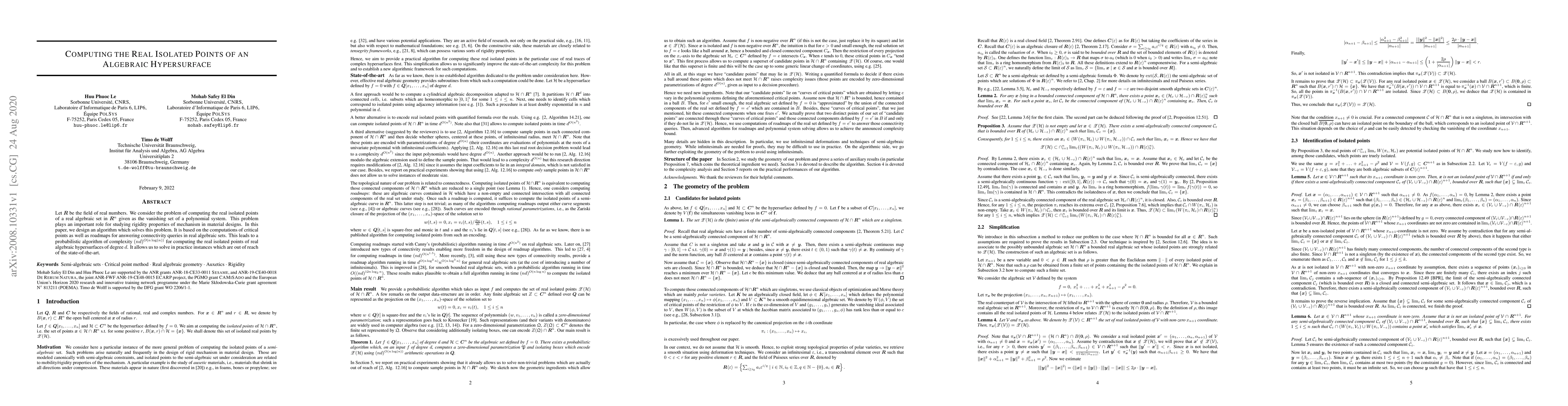 Let $\mathbb{R}$ be the field of real numbers. We consider the problem of computing the real isolated points of a real algebraic set in $\mathbb{R}^n$ given as the vanishing set of a polynomial system. This problem plays an important role for studying rigidity properties of mechanism in material designs. In this paper, we design an algorithm which solves this problem. It is based on the computations of critical points as well as roadmaps for answering connectivity queries in real algebraic sets. This leads to a probabilistic algorithm of complexity $(nd)^{O(n\log(n))}$ for computing the real isolated points of real algebraic hypersurfaces of degree $d$. It allows us to solve in practice instances which are out of reach of the state-of-the-art.