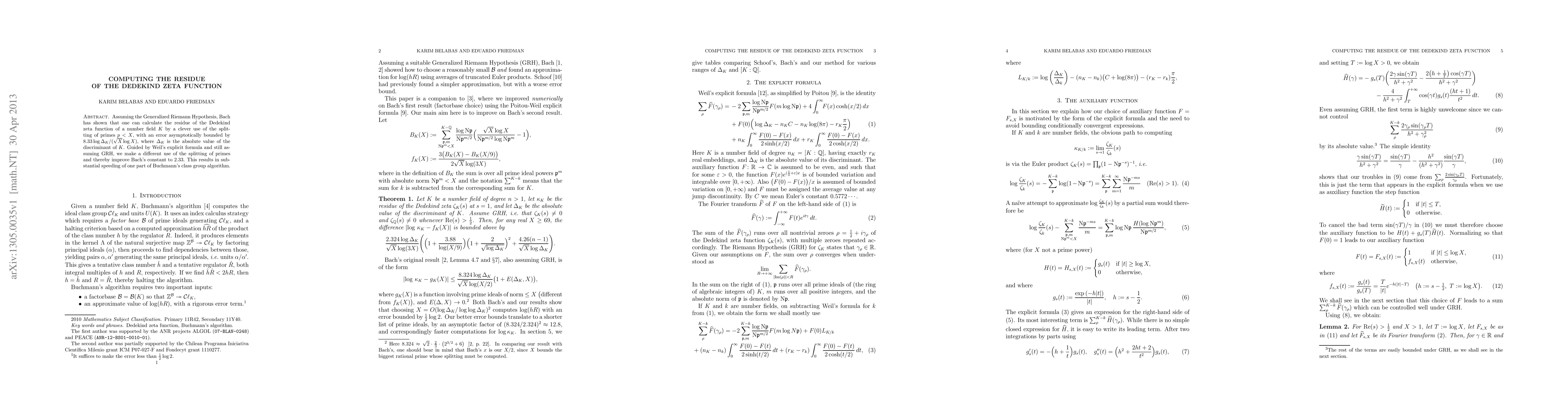 Researchers improve calculation of Dedekind zeta function residue using splitting of primes, reducing error to 2.33 log D_K/(⌀X∞ log X) under Generalized Riemann Hypothesis.