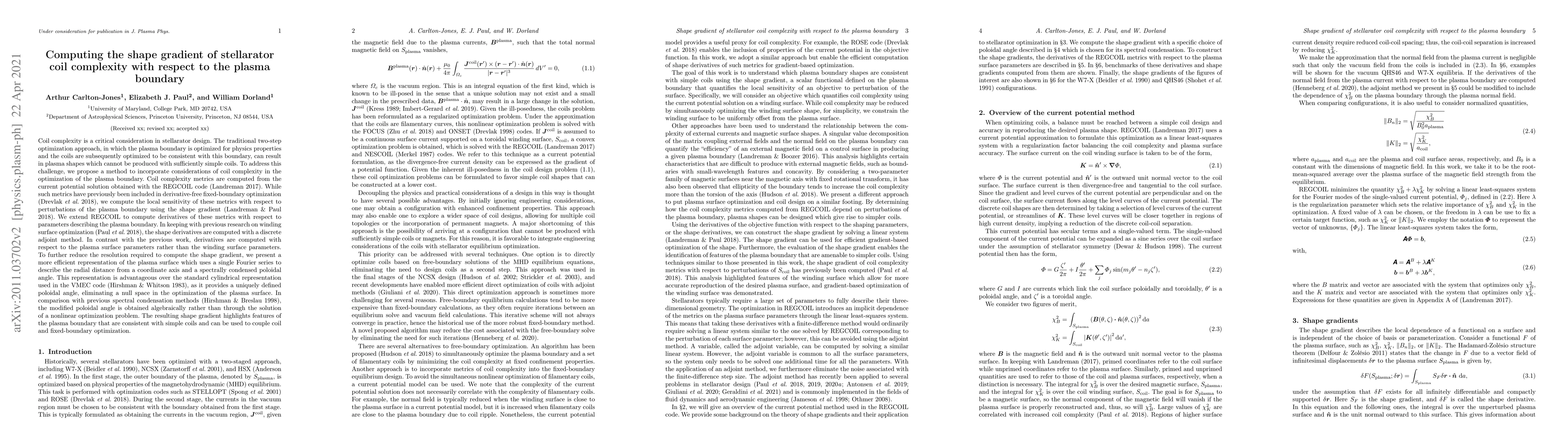 This paper proposes a method to optimize stellarator plasma boundaries while considering coil complexity, using the shape gradient to compute local sensitivities. It introduces a more efficient representation of the plasma surface and extends REGCOIL to compute derivatives, aiming to produce plasma shapes that can be realized with simpler coils.