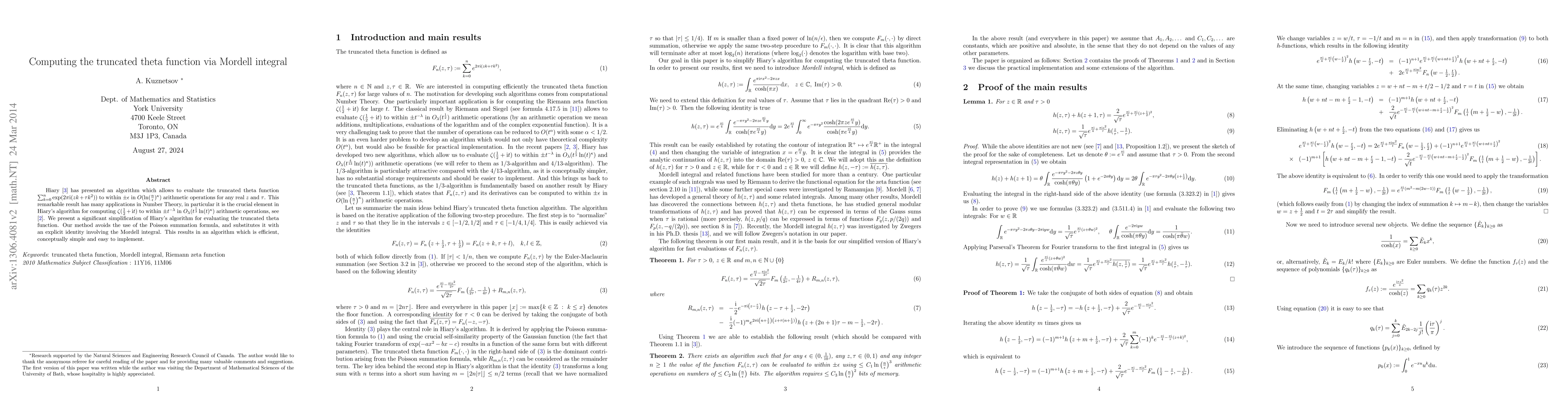 Researchers simplified Hiary's algorithm for computing the truncated theta function, avoiding complex formulas to instead use a more efficient Mordell integral identity, resulting in an easy-to-implement method.