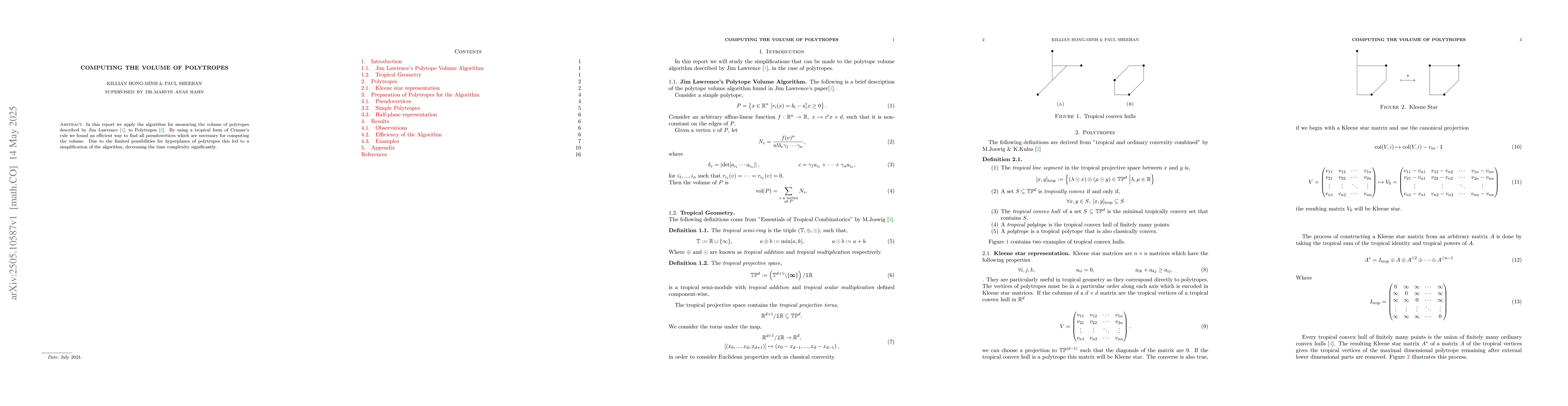 The introduction of a tropical form of Cramer's rule for efficiently computing pseudovertices in polytropes, leading to a simplified volume calculation algorithm.
