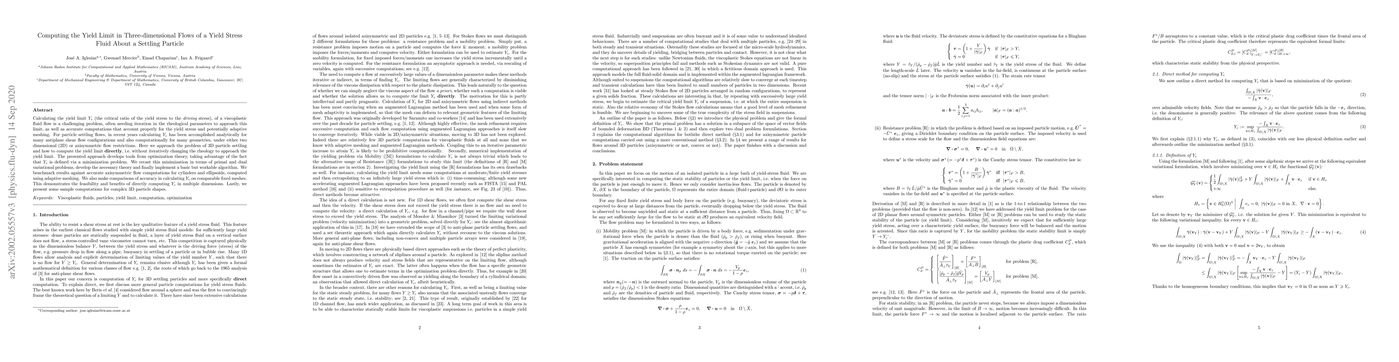 Researchers developed a method to directly compute the yield limit in 3D particle settling flows without iterative adjustments to rheological parameters, using optimization theory and variational problems.