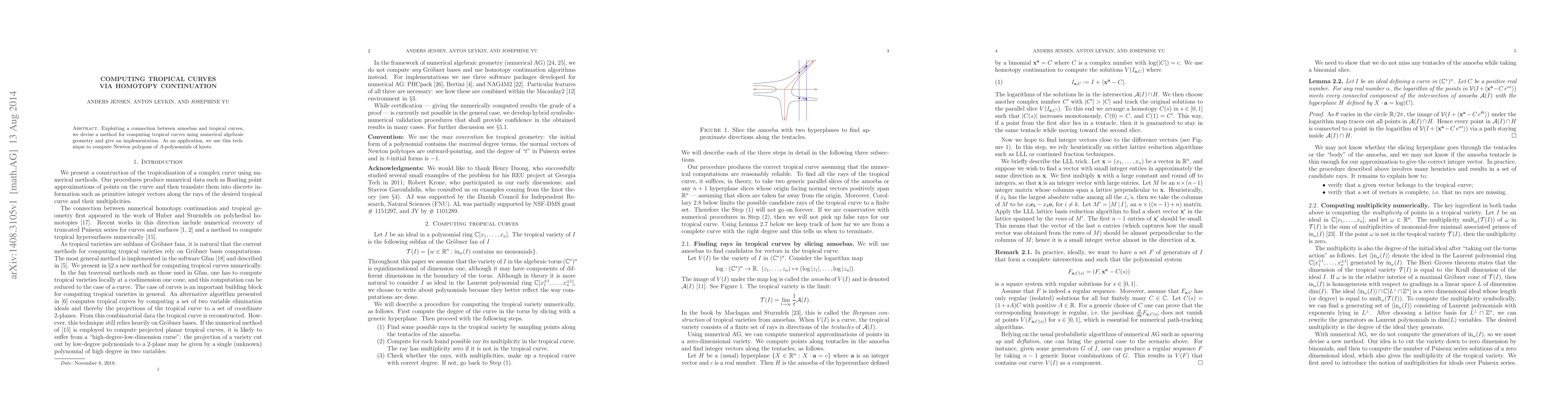 Exploiting a connection between amoebas and tropical curves, we devise a method for computing tropical curves using numerical algebraic geometry and give an implementation. As an application, we use this technique to compute Newton polygons of $A$-polynomials of knots.