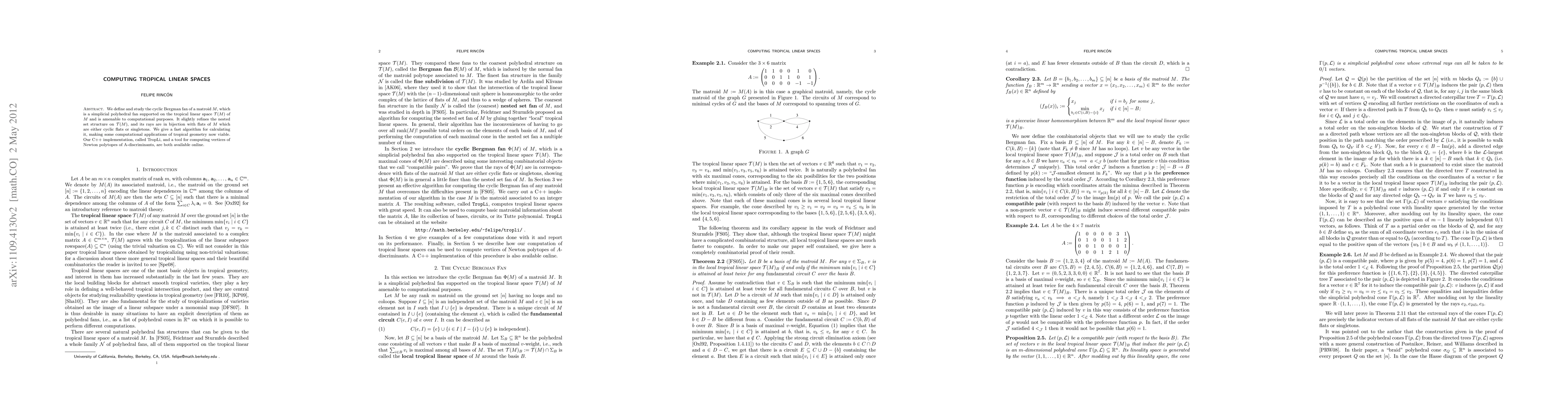 This paper introduces the cyclic Bergman fan of a matroid, a simplicial polyhedral fan that refines the tropical linear space of the matroid, and provides a fast algorithm for its computation. The authors also release a C++ implementation, TropLi, to facilitate computational applications of tropical geometry.