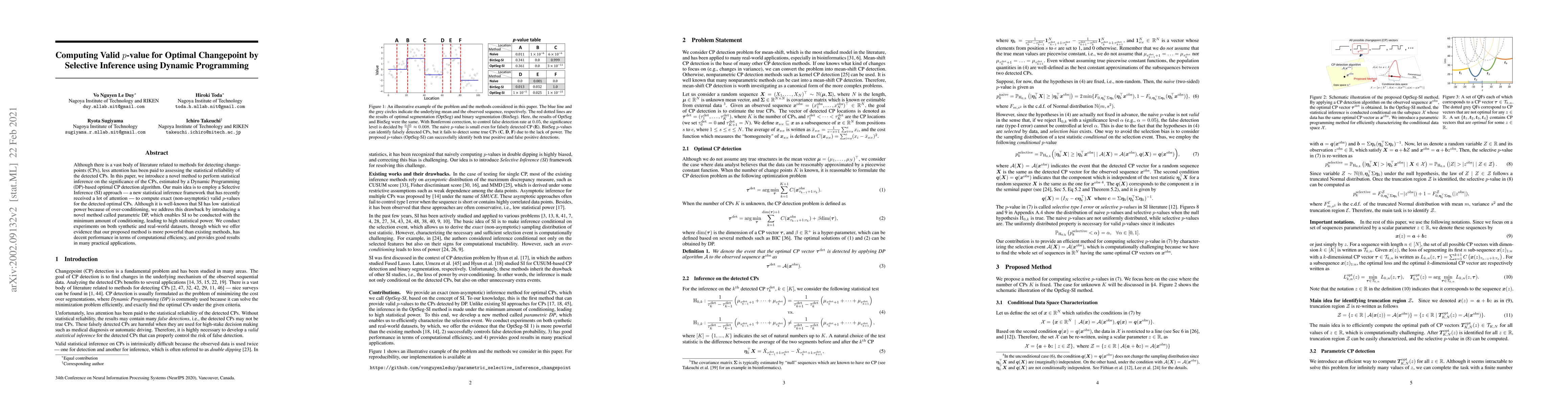 This paper introduces a novel method for computing valid p-values for optimal changepoints detected via Dynamic Programming, using selective inference to ensure statistical reliability. The proposed approach leverages parametric programming to enhance statistical power while maintaining computational efficiency, outperforming existing methods in experiments on both synthetic and real datasets.
