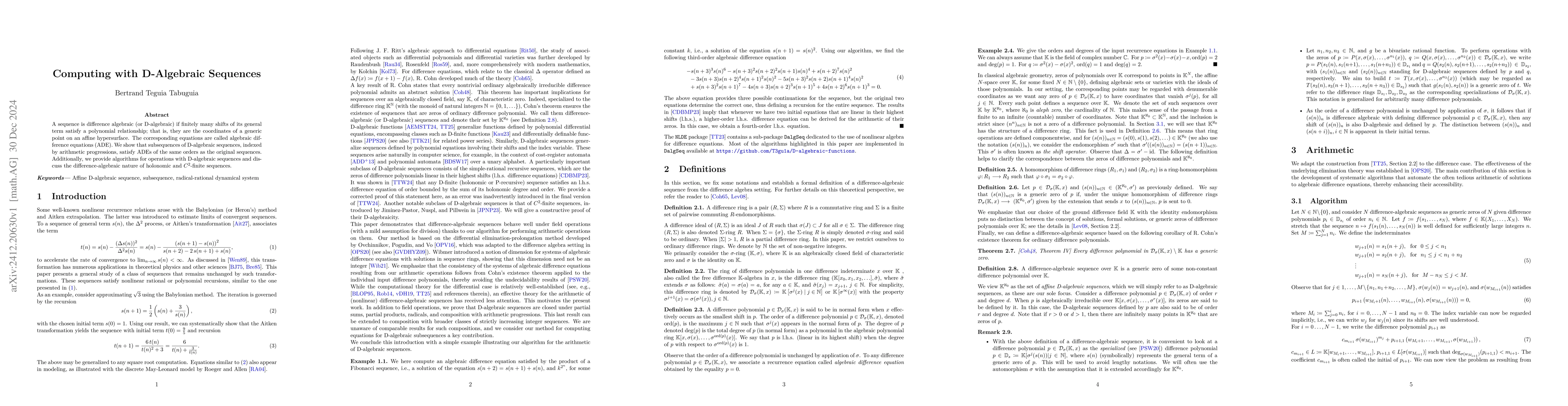 This paper explores difference algebraic sequences, showing that subsequences indexed by arithmetic progressions also satisfy the same order algebraic difference equations as the original sequences. It also provides algorithms for operations with these sequences and examines the difference-algebraic nature of holonomic and $C^2$-finite sequences.