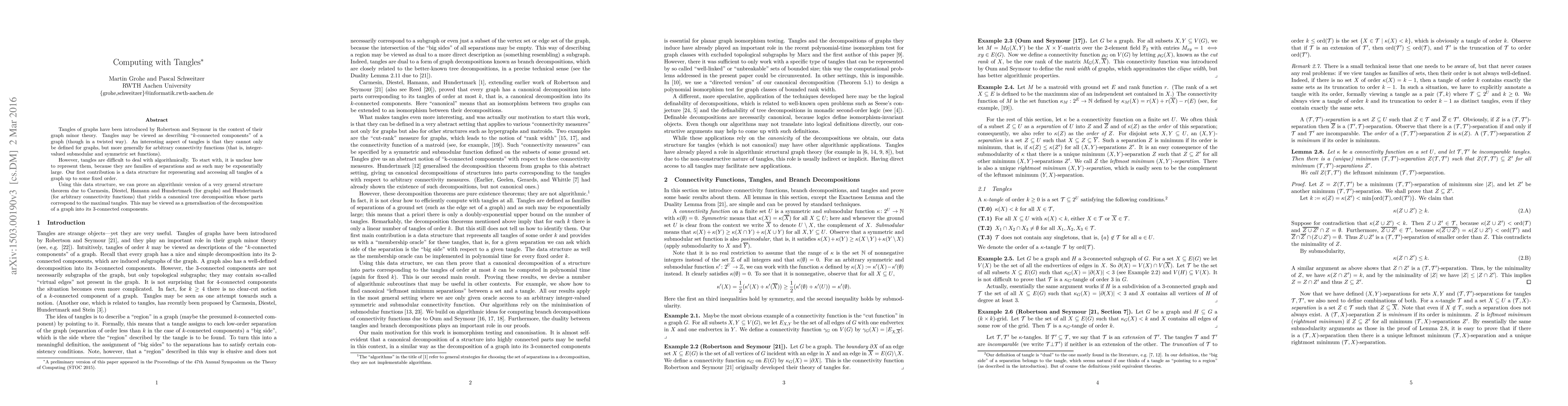 This work is significant as it provides a practical method to deal with tangles, which are crucial in graph minor theory but challenging to handle algorithmically. The results can potentially lead to advancements in graph algorithms and structural graph theory.