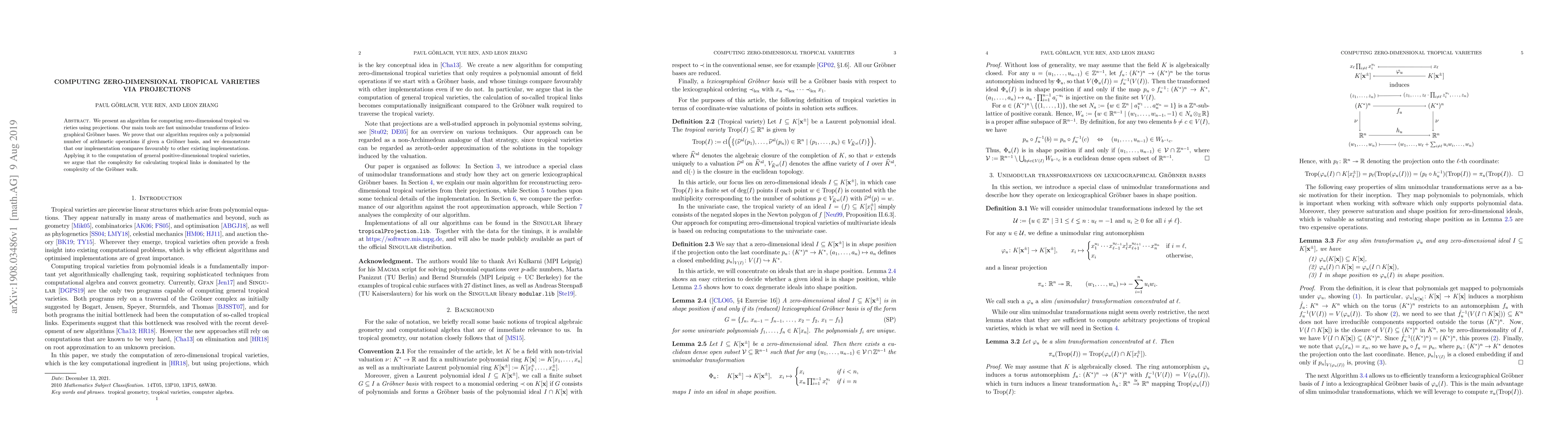We present an algorithm for computing zero-dimensional tropical varieties using projections. Our main tools are fast unimodular transforms of lexicographical Gr\"obner bases. We prove that our algorithm requires only a polynomial number of arithmetic operations if given a Gr\"obner basis, and we demonstrate that our implementation compares favourably to other existing implementations. Applying it to the computation of general positive-dimensional tropical varieties, we argue that the complexity for calculating tropical links is dominated by the complexity of the Gr\"obner walk.