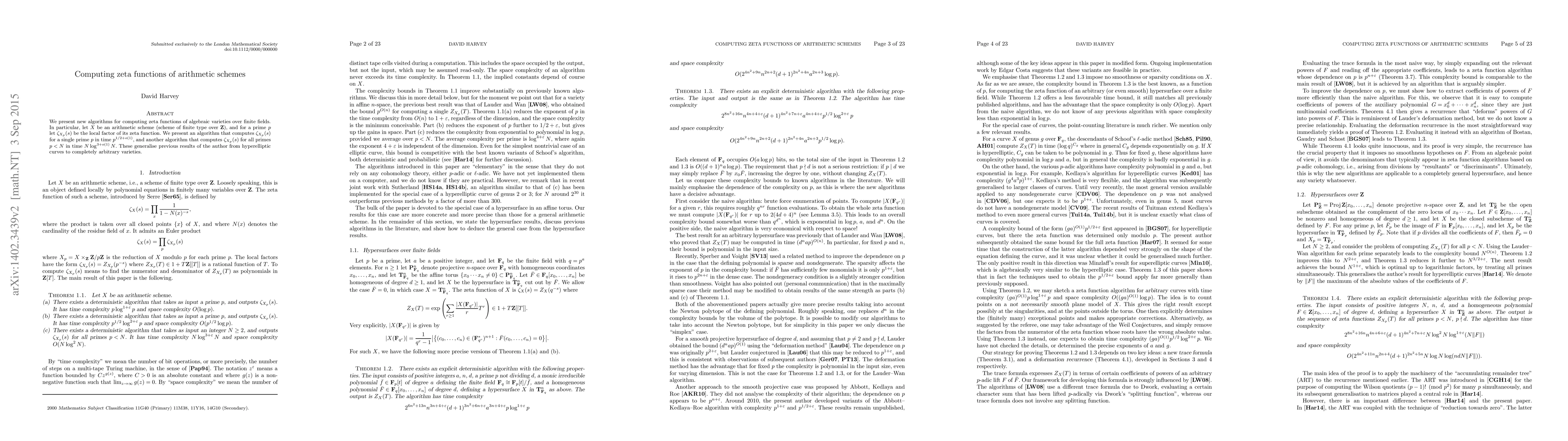 We present new algorithms for computing zeta functions of algebraic varieties over finite fields. In particular, let X be an arithmetic scheme (scheme of finite type over Z), and for a prime p let zeta_{X_p}(s) be the local factor of its zeta function. We present an algorithm that computes zeta_{X_p}(s) for a single prime p in time p^(1/2+o(1)), and another algorithm that computes zeta_{X_p}(s) for all primes p < N in time N (log N)^(3+o(1)). These generalise previous results of the author from hyperelliptic curves to completely arbitrary varieties.