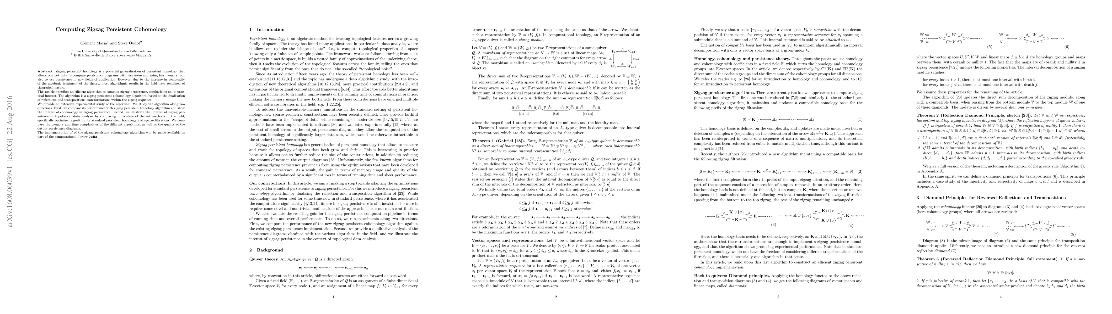 Zigzag persistent homology is a powerful generalisation of persistent homology that allows one not only to compute persistence diagrams with less noise and using less memory, but also to use persistence in new fields of application. However, due to the increase in complexity of the algebraic treatment of the theory, most algorithmic results in the field have remained of theoretical nature. This article describes an efficient algorithm to compute zigzag persistence, emphasising on its practical interest. The algorithm is a zigzag persistent cohomology algorithm, based on the dualisation of reflections and transpositions transformations within the zigzag sequence. We provide an extensive experimental study of the algorithm. We study the algorithm along two directions. First, we compare its performance with zigzag persistent homology algorithm and show the interest of cohomology in zigzag persistence. Second, we illustrate the interest of zigzag persistence in topological data analysis by comparing it to state of the art methods in the field, specifically optimised algorithm for standard persistent homology and sparse filtrations. We compare the memory and time complexities of the different algorithms, as well as the quality of the output persistence diagrams.
