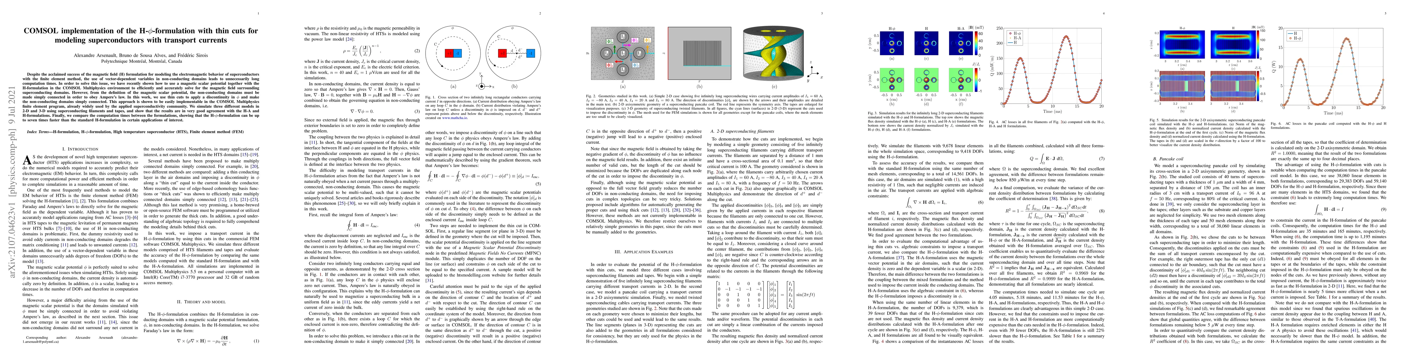 This paper presents an efficient implementation of the H-$\phi$-formulation in COMSOL Multiphysics for modeling superconductors with transport currents, using thin cuts to make non-conducting domains simply connected. The results demonstrate significant speed improvements, up to seven times faster than the standard H-formulation, while maintaining accuracy.