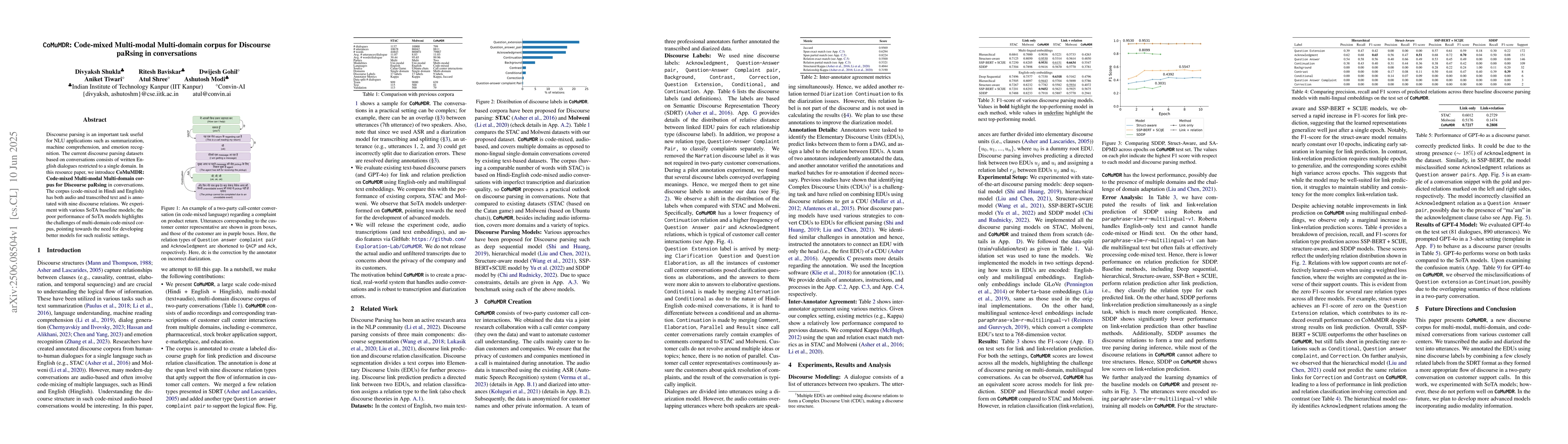 Researchers developed CoMuMDR, a new dataset for discourse parsing in conversations, to improve NLU models' performance on code-mixed multi-domain dialogue. The study highlights the need for better models to tackle complex scenarios.
