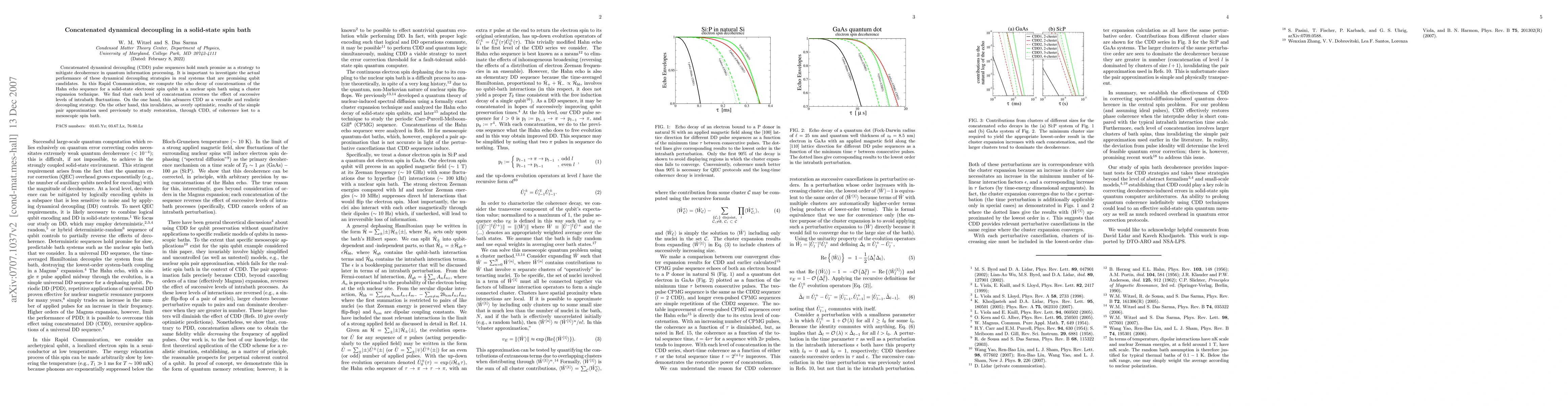 This paper investigates concatenated dynamical decoupling (CDD) sequences to mitigate decoherence in solid-state spin qubits, demonstrating that each level of CDD counteracts intrabath fluctuations. It finds that previous pair approximation results were overly optimistic and highlights CDD as a practical decoupling strategy.