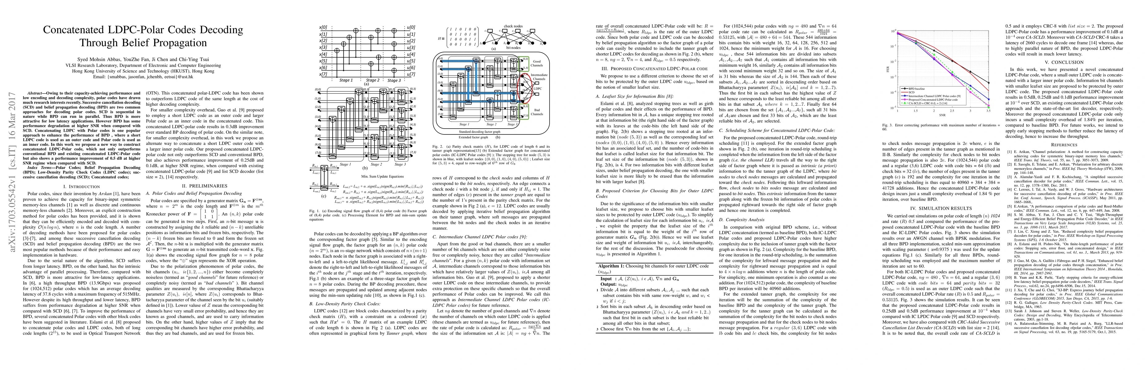 This paper proposes a novel method for decoding concatenated LDPC-Polar codes using belief propagation, which outperforms conventional decoding methods and achieves a 0.5 dB performance improvement over successive cancellation decoding at higher SNRs.