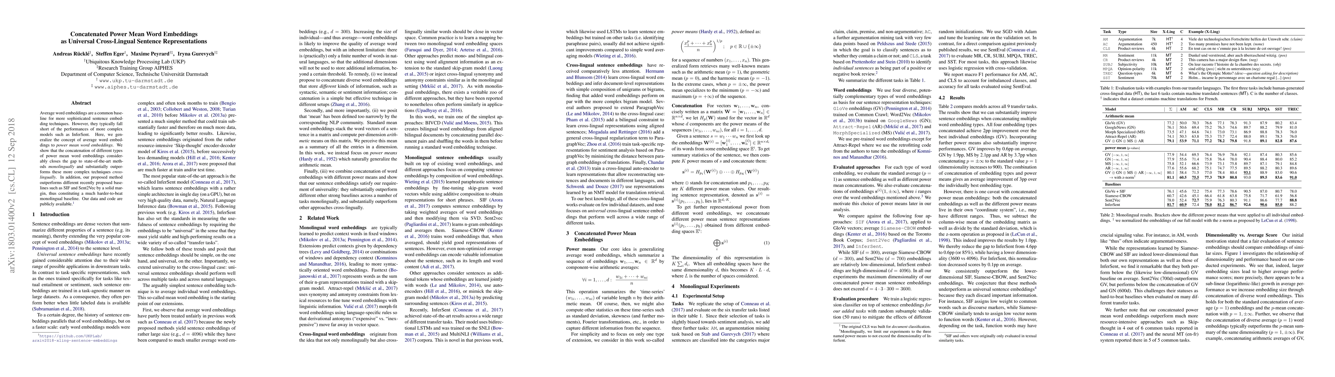 This paper proposes a novel method of concatenating power mean word embeddings to create robust sentence representations that perform well both monolingually and cross-lingually, surpassing complex baselines like InferSent and recent methods such as SIF and Sent2Vec. The method serves as a strong monolingual baseline and is made publicly available for further research.