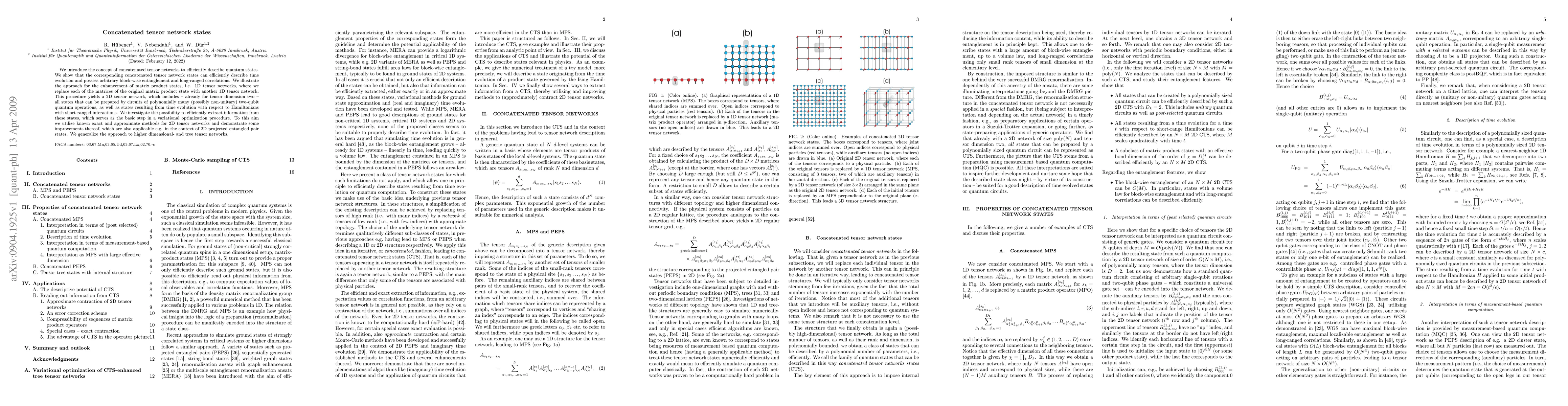 This paper introduces concatenated tensor networks to efficiently describe quantum states, showing they can handle time evolution and possess complex entanglement. It enhances matrix product states by replacing matrices with 1D tensor networks, forming 2D tensor networks that encompass states from polynomially many two-qubit operations and short-ranged Hamiltonian evolutions, and explores efficient information extraction methods for these states.
