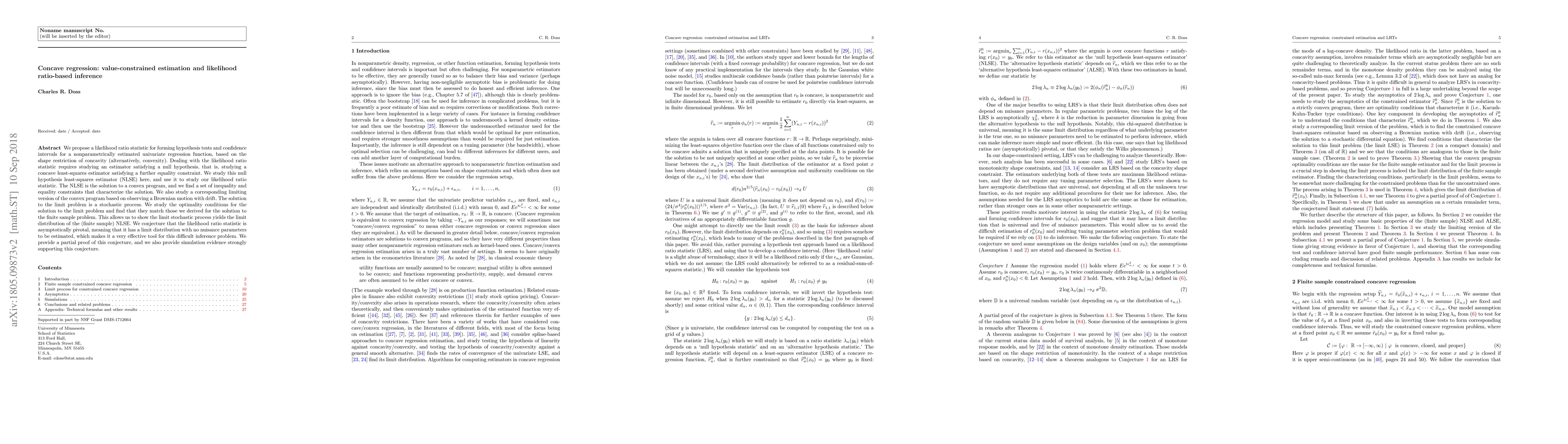 Researchers propose a new method for estimating regression functions in nonparametric models, using a concave least-squares estimator that ensures the model is either concave or convex. They show that this method leads to an asymptotically pivotal test statistic with no nuisance parameters to estimate.