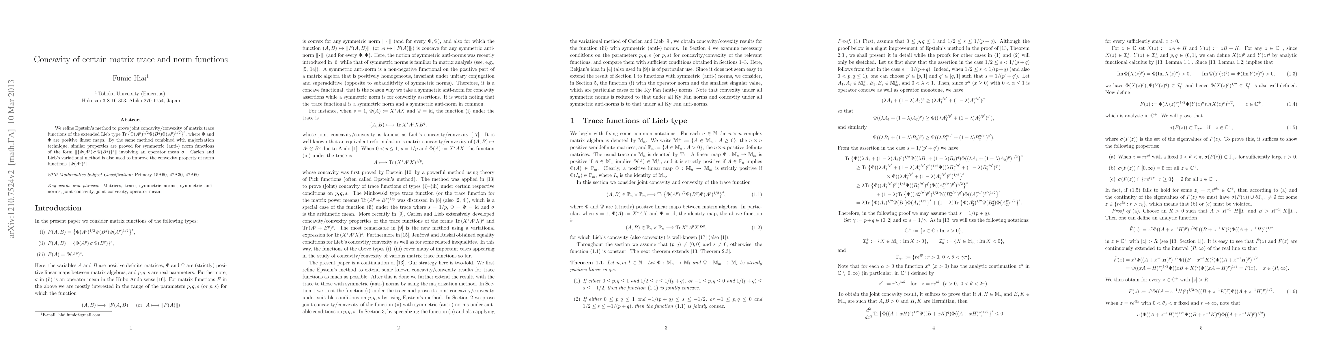 The paper presents a refined method to prove joint concavity/convexity of matrix trace and norm functions, combining Epstein's method with majorization techniques and Carlen-Lieb's variational method.