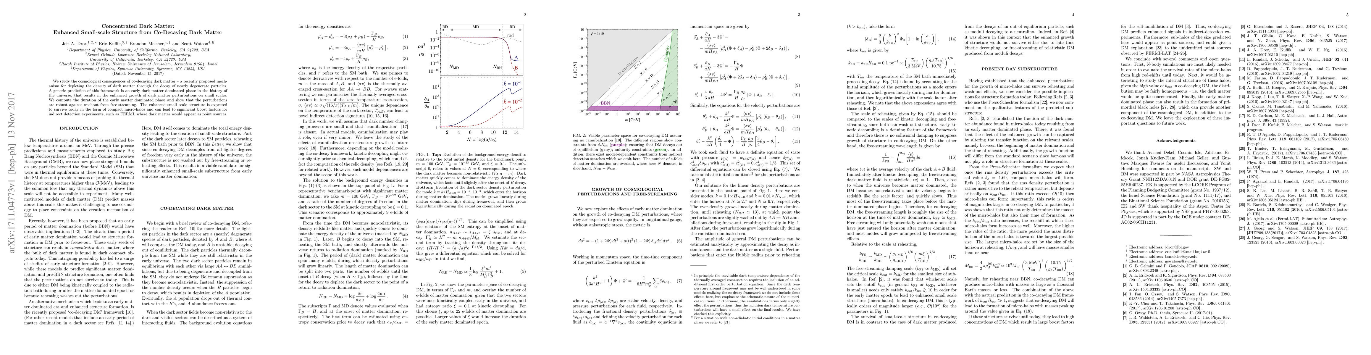 This paper investigates the implications of co-decaying dark matter, proposing that its decay enhances small-scale structure formation. It predicts the persistence of these enhanced perturbations in the form of compact micro-halos, potentially boosting signals for indirect dark matter detection experiments.