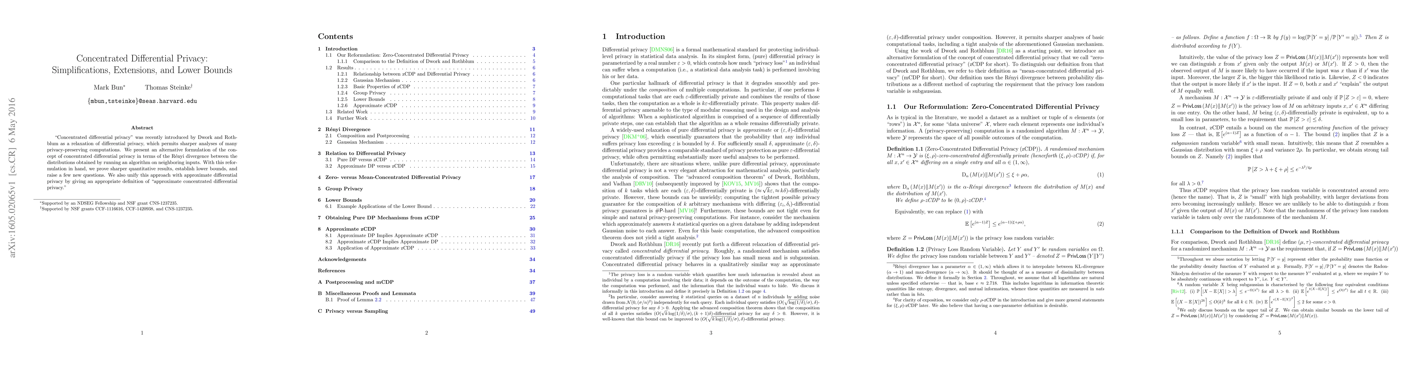 This paper reformulates concentrated differential privacy using Renyi divergence, leading to sharper analyses and quantitative results. It also establishes lower bounds and introduces the concept of approximate concentrated differential privacy, unifying it with approximate differential privacy.