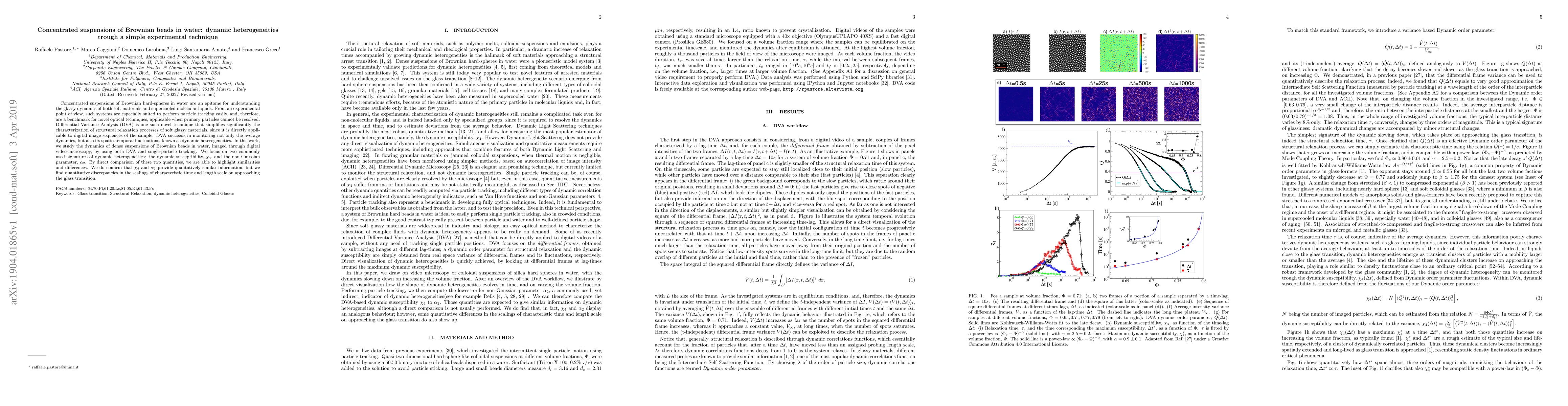 This paper investigates the dynamics of concentrated suspensions of Brownian beads in water using Differential Variance Analysis (DVA) and single-particle tracking. It compares two signatures of dynamic heterogeneities, $\chi_4$ and $\alpha_2$, and finds qualitative similarities but quantitative discrepancies in their scaling behavior near the glass transition.