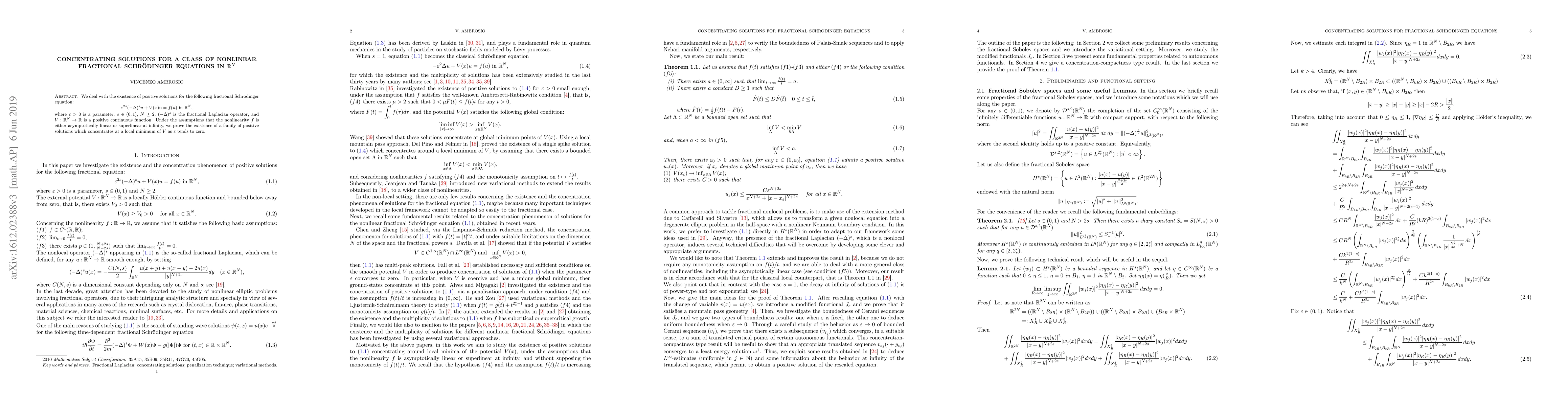 This paper investigates the existence of positive solutions for a fractional Schrödinger equation in $\mathbb{R}^{N}$, proving that under certain conditions on the nonlinearity, solutions concentrate at local minima of the potential function $V$ as a parameter $\varepsilon$ approaches zero.