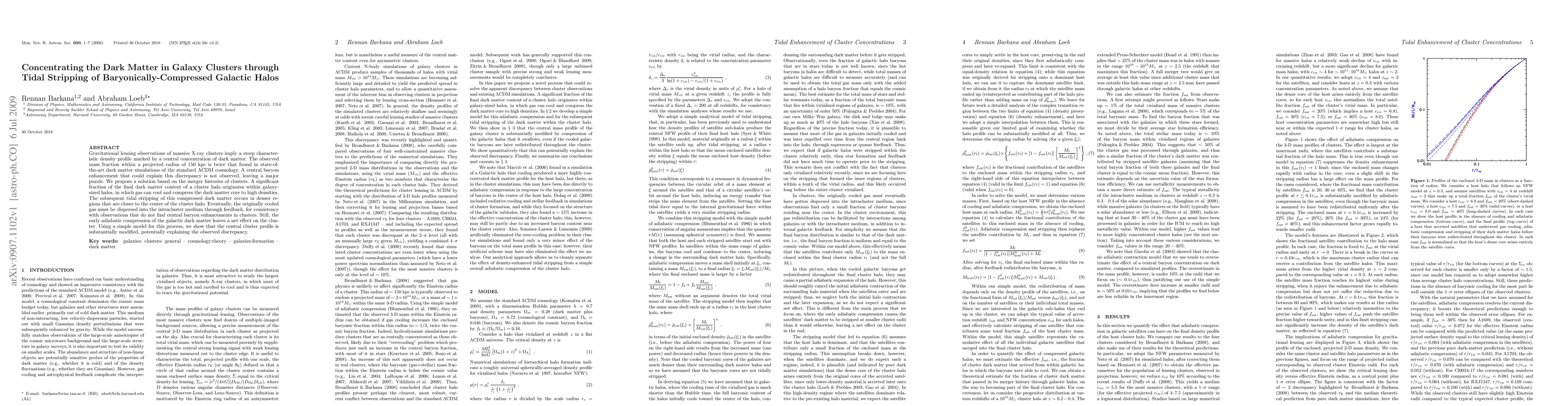 This paper proposes that tidal stripping of baryonically-compressed galactic halos during cluster mergers can concentrate dark matter in galaxy clusters, resolving the discrepancy between observed gravitational lensing data and standard dark matter simulations. The model suggests that early adiabatic compression of dark matter in galaxy-sized halos leads to a central concentration that matches observations.