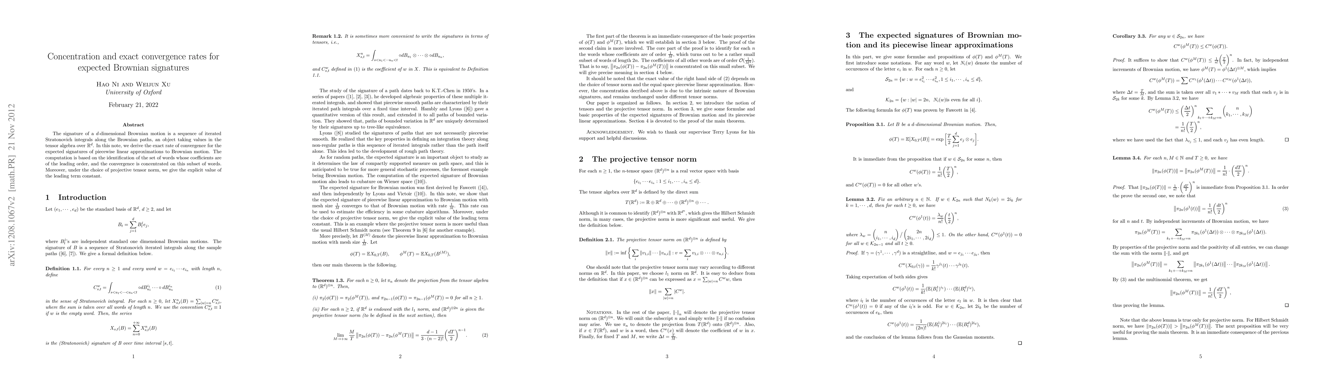 This paper derives the exact rate of convergence for the expected signatures of piecewise linear approximations to Brownian motion, focusing on a specific subset of words with leading order coefficients.