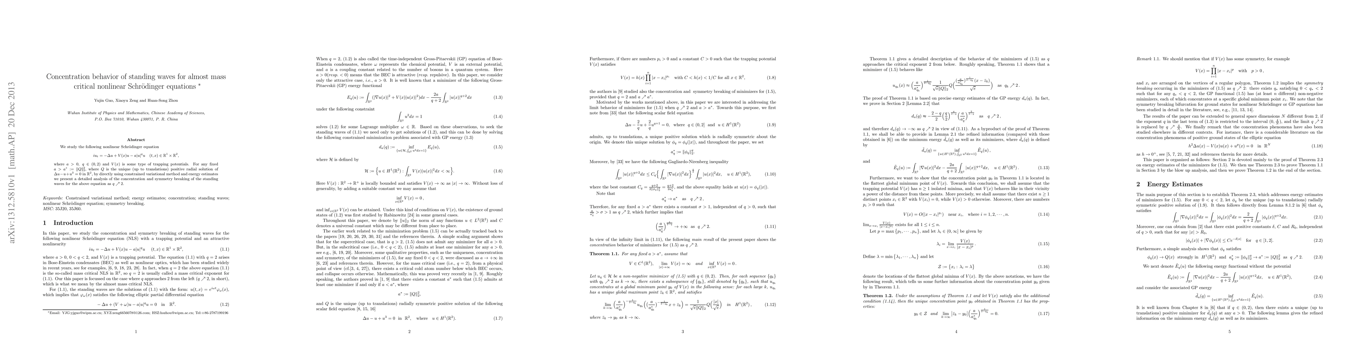 This research investigates the concentration behavior of standing waves in nearly mass-critical nonlinear Schrödinger equations with trapping potentials. Utilizing variational methods and energy estimates, the study reveals detailed analysis of concentration and symmetry breaking as the nonlinearity approaches the critical regime.