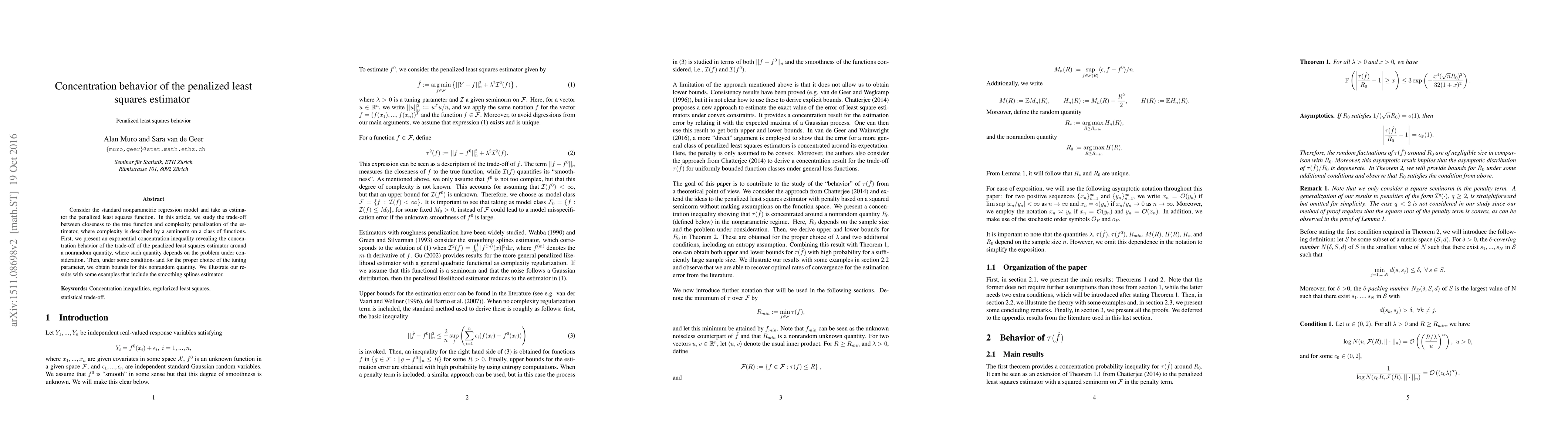 This paper investigates the penalized least squares estimator in nonparametric regression, focusing on the balance between estimator accuracy and complexity penalization. The authors derive an exponential concentration inequality to describe the estimator's behavior and provide bounds for a nonrandom quantity under certain conditions, using smoothing splines as an example.