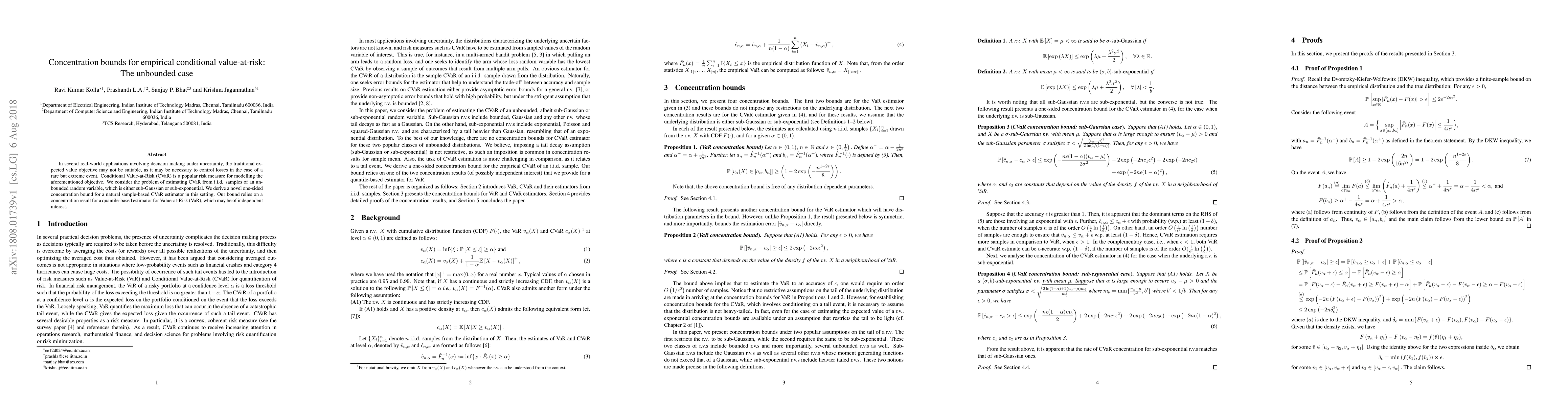 This paper provides a novel concentration bound for estimating the empirical conditional value-at-risk (CVaR) from i.i.d. samples of an unbounded random variable, which is either sub-Gaussian or sub-exponential. The derived bound is based on a concentration result for a quantile-based estimator for value-at-risk (VaR).