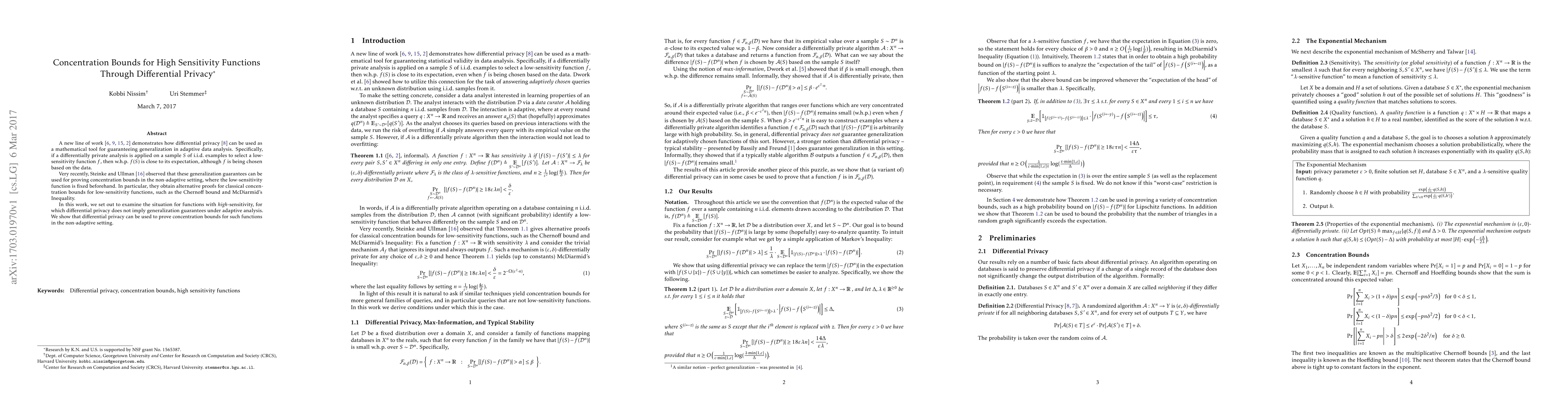 This paper explores the use of differential privacy to establish concentration bounds for high sensitivity functions in non-adaptive settings, demonstrating that while differential privacy does not guarantee generalization for adaptive analyses, it can still provide strong concentration guarantees when the analysis is predetermined.