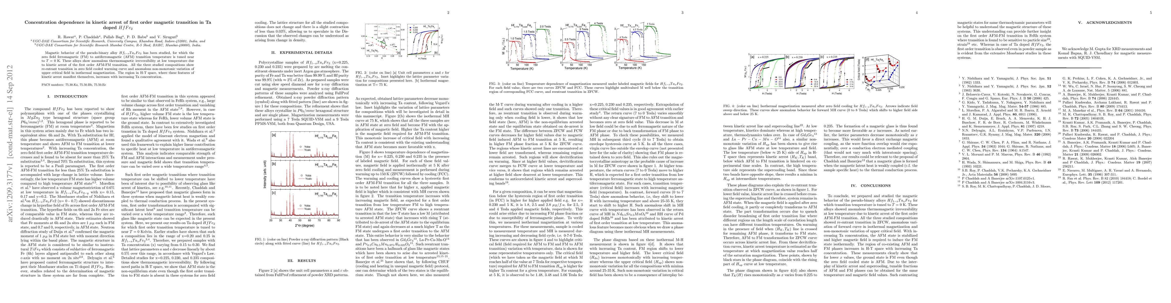 This study investigates the magnetic behavior of Ta-doped $HfFe_2$ alloys, revealing a first-order AFM-FM transition near T=0 K. The research finds that kinetic arrest leads to anomalous thermomagnetic irreversibility and re-entrant transitions in zero field cooling, with these effects expanding with higher Ta concentrations.