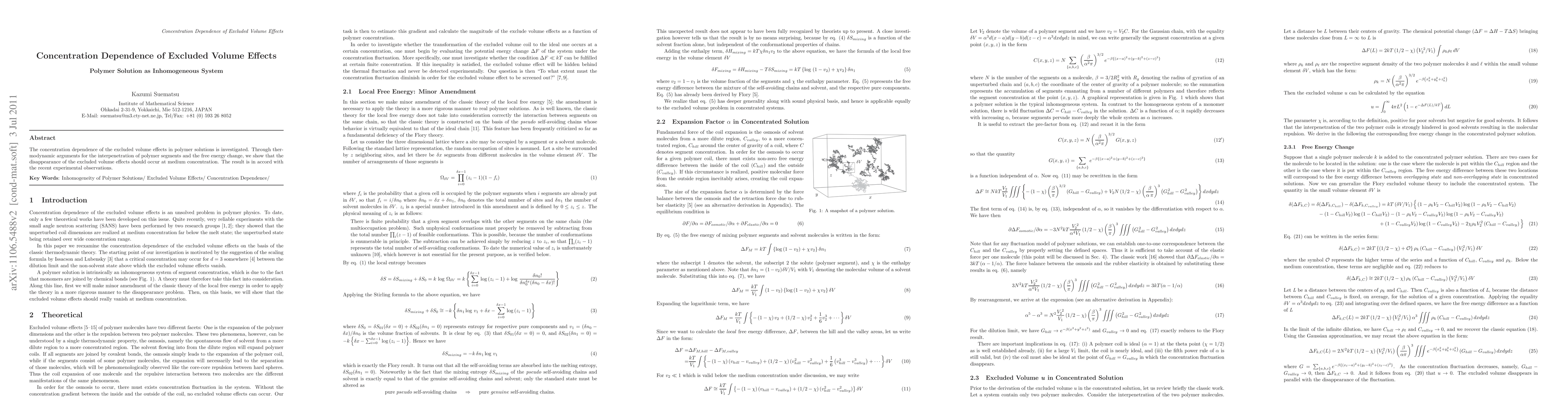 This paper investigates how excluded volume effects in polymer solutions change with concentration, demonstrating through thermodynamic analysis that these effects vanish at medium concentrations, aligning with recent experimental findings.