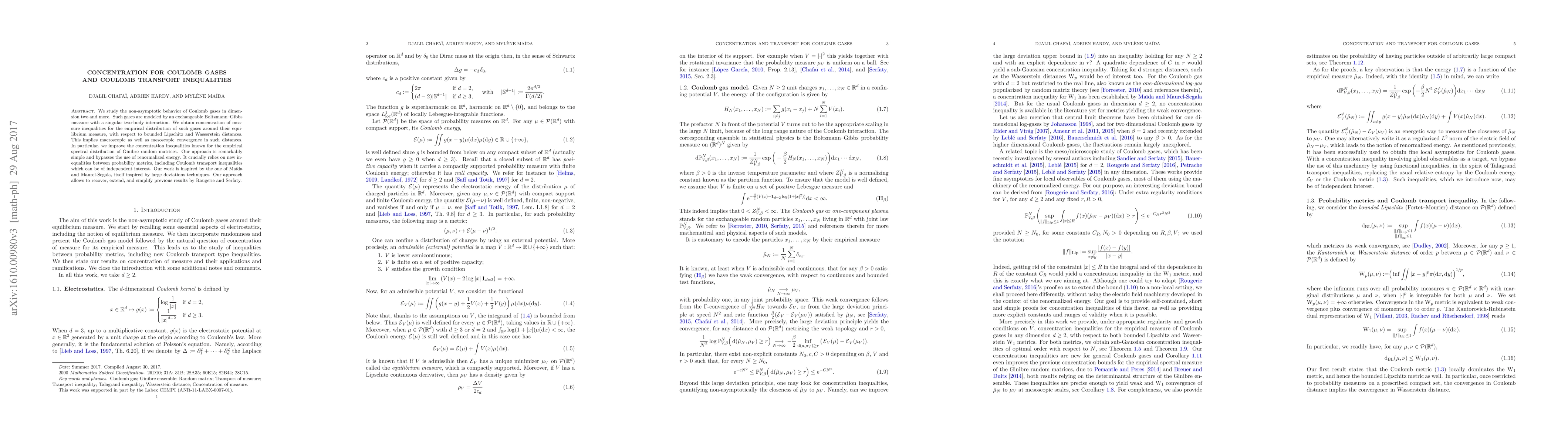 This paper studies the non-asymptotic behavior of Coulomb gases in dimensions two and higher, proving concentration inequalities for their empirical distributions. The work introduces Coulomb transport inequalities, simplifying existing results and improving concentration bounds for Ginibre random matrices.