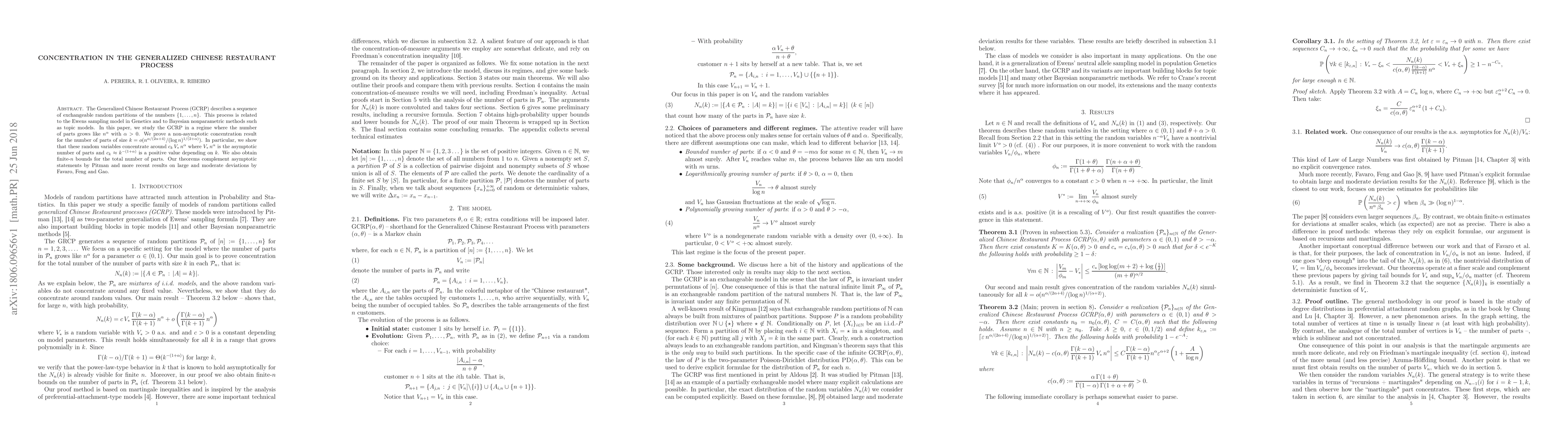 This paper studies the Generalized Chinese Restaurant Process (GCRP) in a regime where the number of partitions grows as $n^\alpha$, proving non-asymptotic concentration for the number of parts of specific sizes. It demonstrates that these parts concentrate around an asymptotic value with finite-$n$ bounds, complementing existing results.