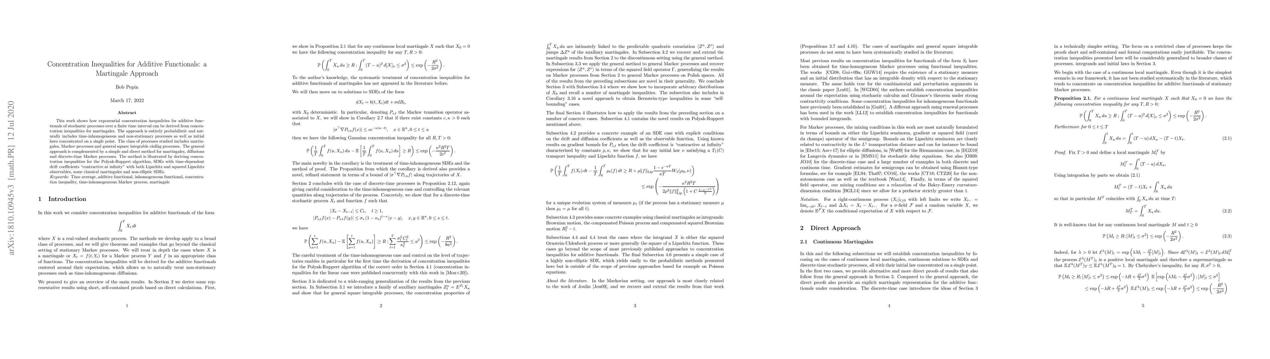 This paper develops a probabilistic martingale approach to derive exponential concentration inequalities for additive functionals of stochastic processes, including time-inhomogeneous and non-stationary processes. The method is illustrated by deriving inequalities for the Polyak-Ruppert algorithm and various stochastic differential equations.