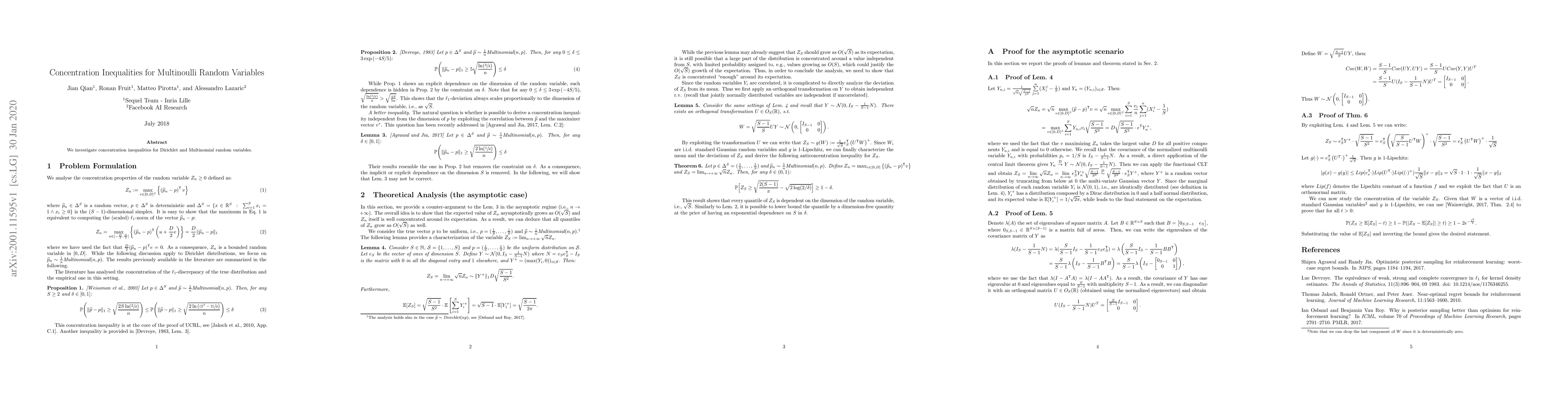 We investigate concentration inequalities for Dirichlet and Multinomial random variables.