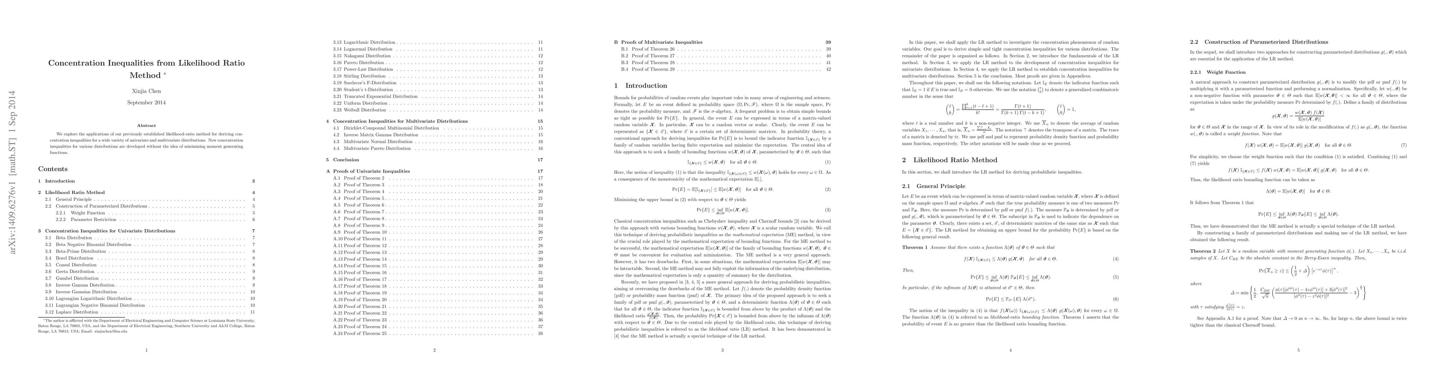This paper applies a previously developed likelihood-ratio method to derive concentration inequalities for both univariate and multivariate distributions, offering new inequalities without relying on moment generating functions.