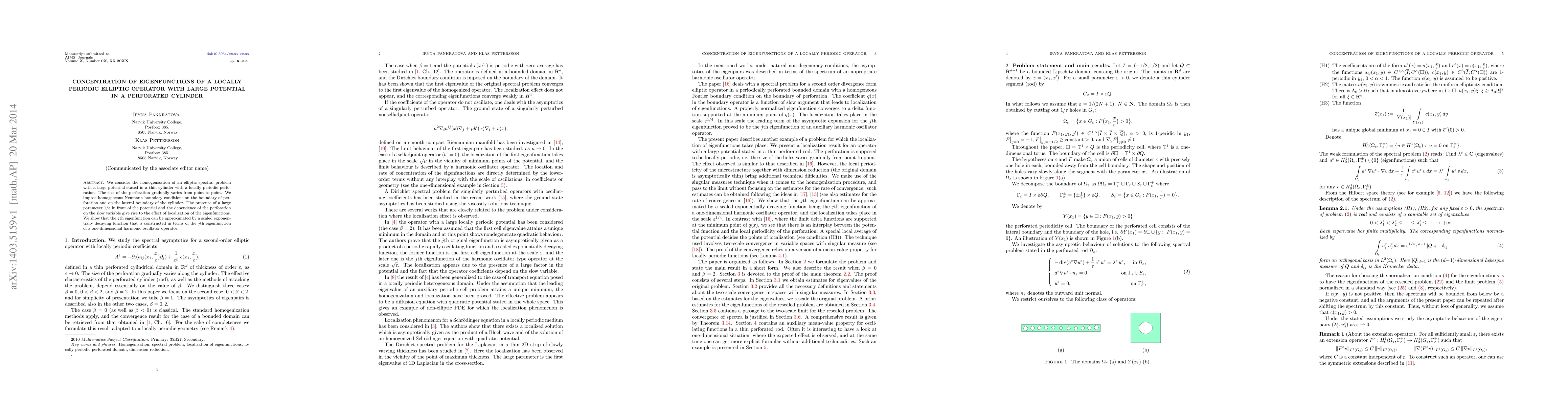 Researchers studied how eigenfunctions of an elliptic operator behave in a cylinder with a locally periodic perforation, finding that they can be approximated by exponentially decaying functions related to harmonic oscillator operators.